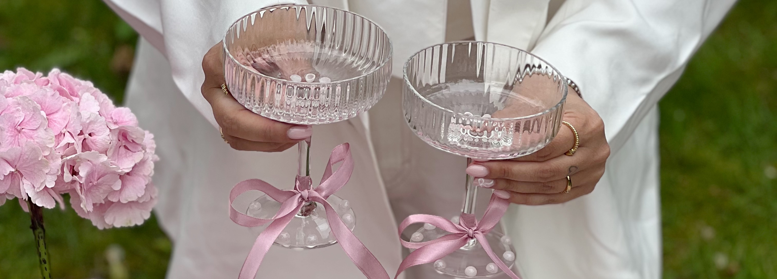 Set van 2 rozenkwarts cocktailglazen